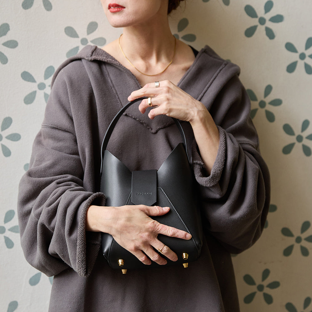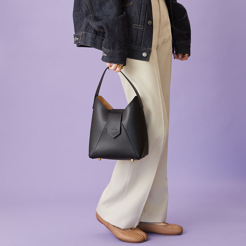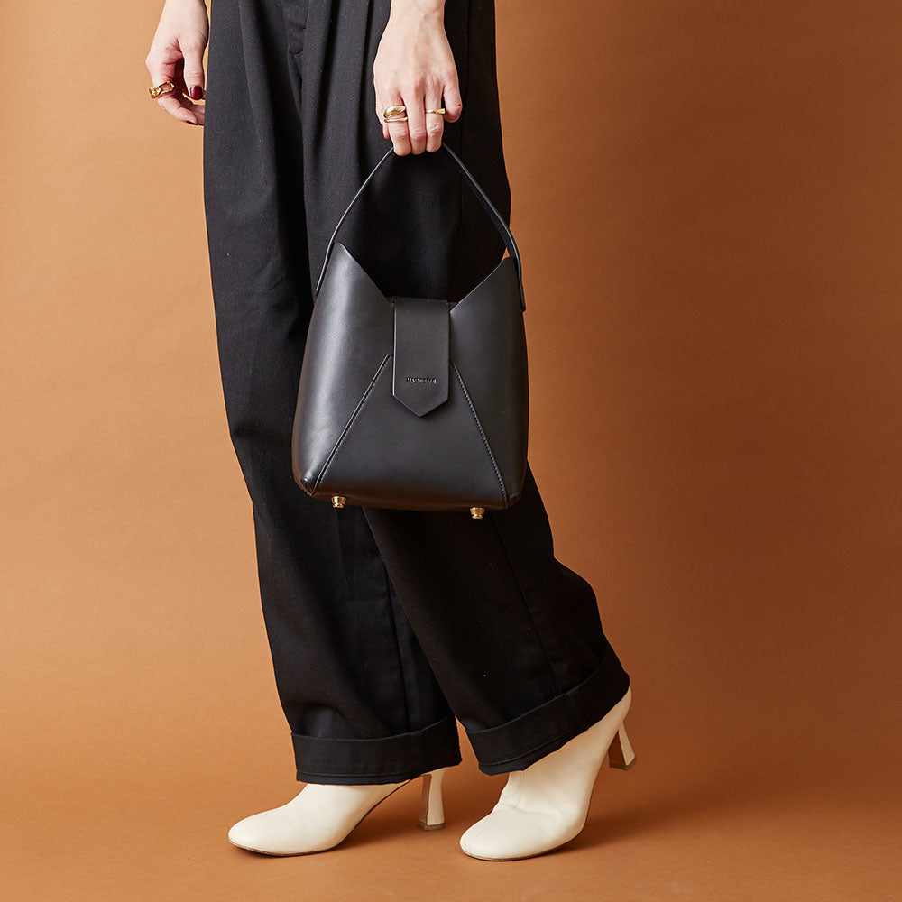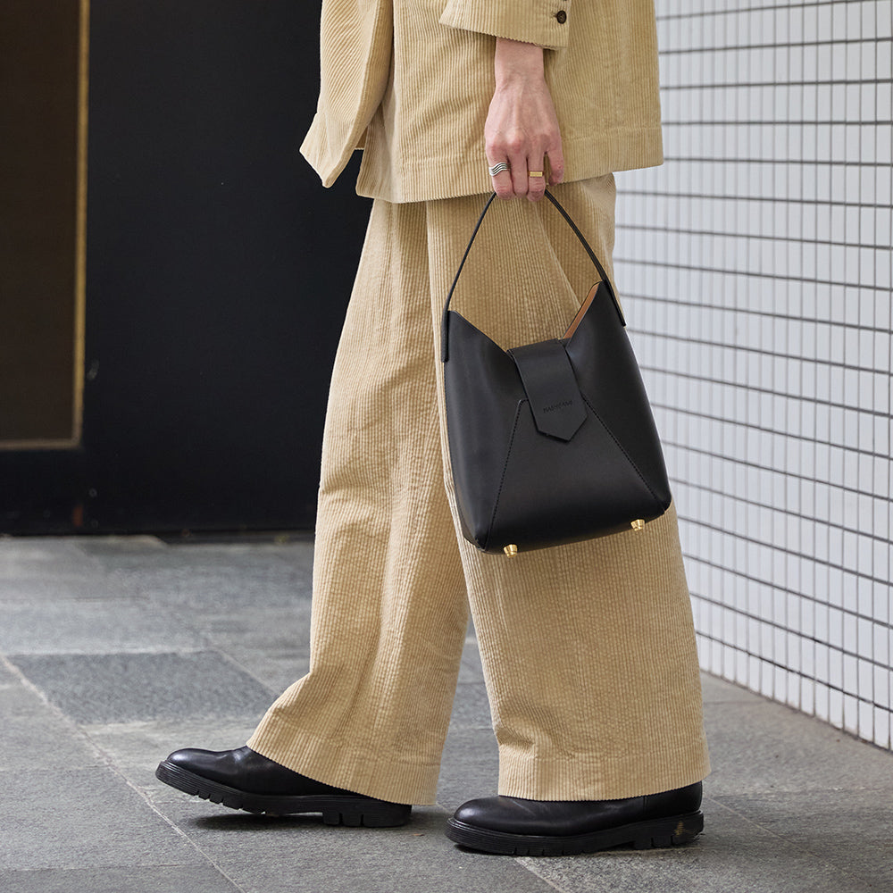 V字カットのシャープさと立体的な本体が特徴でスタイリッシュなワンハンドルBAG。