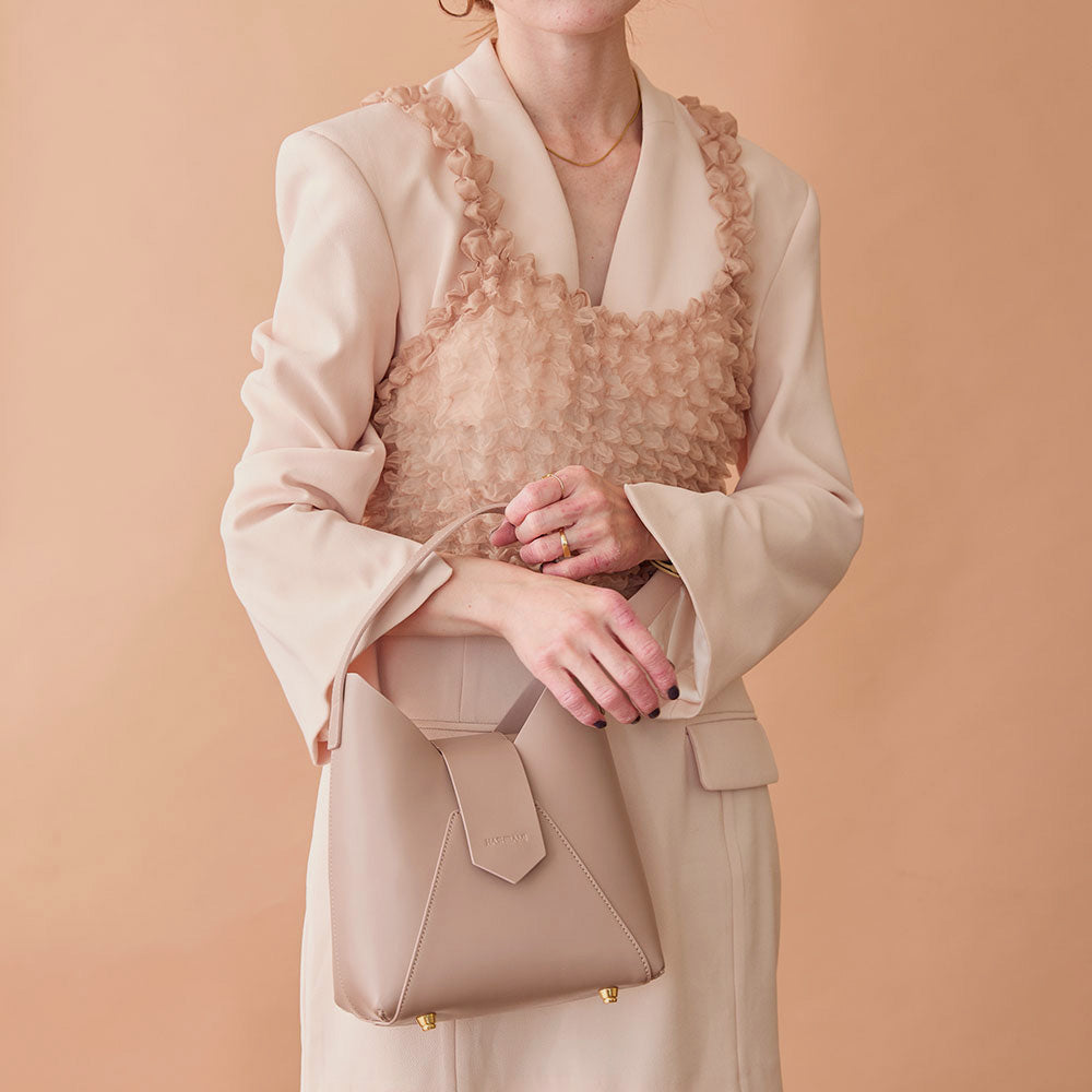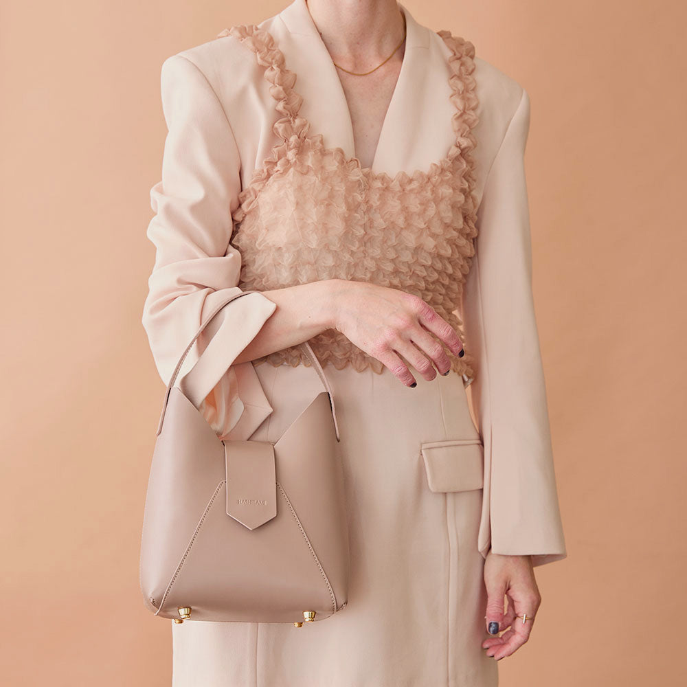 V字カットのシャープさと立体的な本体が特徴でスタイリッシュなワンハンドルBAG。